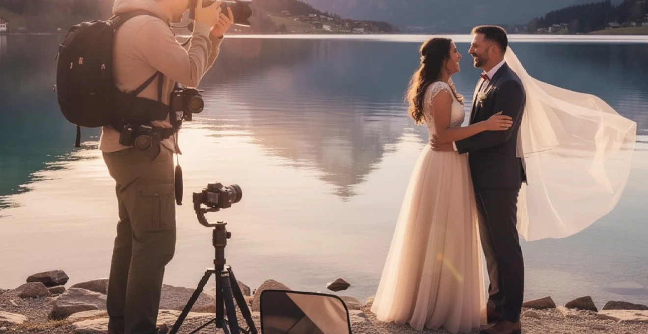 Pour la partie vidéo ou les séquences hybrides photo/vidéo, un stabilisateur comme le DJI Ronin RS3 permet de réaliser des plans fluides, même sur des terrains accidentés. Imaginez une entrée de cérémonie captée en travelling doux, le couple progressant le long d’un sentier surplombant le lac Léman, la caméra les suivant sans à-coups. Cet outil transforme littéralement la perception de votre mariage : on passe de simples clips à un véritable film de mariage cinématographique. En montagne, où chaque pas peut être irrégulier, cette stabilisation devient indispensable pour préserver le confort visuel du spectateur.
